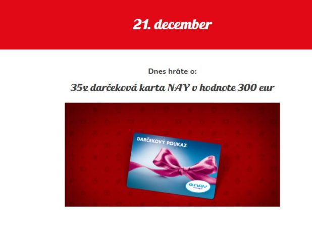 Tagy: fbsutaze.sk, súťaže, súťaže na facebooku, facebook súťaže, fb súťaže, súťaže na internete, súťaž o darčeková karta NAY v hodnote 300 eur, Kaufland Advetny kalendar 2021, kaufland vianocna sutaz, kaufland Vianočná súťaž, Adventná súťaž kaufland, sutaz kaufland 2021, adventny kalendar kaufland, kaufland adventy kalendar 2021, sutaz o poukaz na nakup v Kauflande, kaufland sutaz 2021, kaufland súťaž 2021, vianočná súťaž kaufland 2021, Adventný výherný kalendár 2021 kaufland,