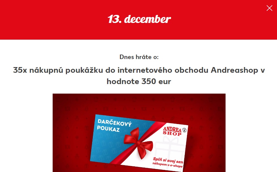 Tagy: fbsutaze.sk, súťaže, súťaže na facebooku, facebook súťaže, fb súťaže, súťaže na internete, súťaž o 35x nákupnú poukážku do internetového obchodu Andreashop v hodnote 350 eur, súťaž o poukaz, súťaž o voucher, súťaž Kaufland Advetny kalendar 2022, kaufland vianocna sutaz, kaufland Vianočná súťaž, Adventná súťaž kaufland, sutaz kaufland 2022, adventny kalendar kaufland, kaufland adventy kalendar 2022, kaufland sutaz 202, kaufland súťaž 2022, vianočná súťaž kaufland 2022, sutaz adventny kalendar 2022, adventny kalendar kaufland 2022, sutazny adventny kalendar 2022, kaufland vianocna sutaz 2022, sutaz o ceny kaufland 2022, kaufland súťažný adventný kalendár 2022, Kaufland Veľký adventný kalendár, Kaufland Veľký adventný kalendár 2022, Kaufland velky adventny kalendar,