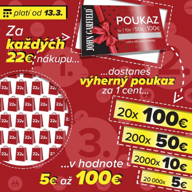 Zapojte sa do spotrebiteľskej súťaže o 20x 100€, 200x 50€ poukaz na nákup v sieti John Garfield