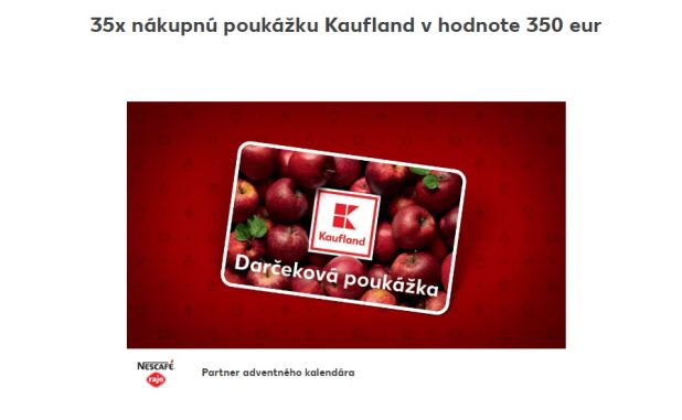 Kaufland Adventný kalendár 2023: otvorte okienko číslo 7 a hrajte o 35x nákupnú poukážku Kaufland v hodnote 350 eur Posted on 7. decembra 2023 by Fb Súťaže Continue reading →