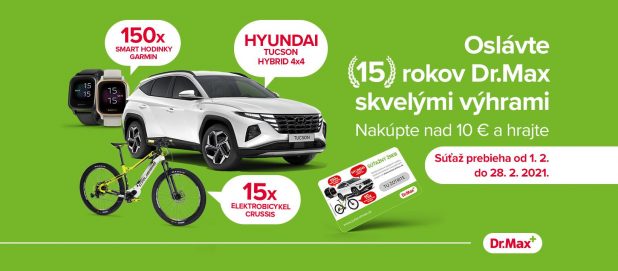 Nakúpte v lekárni Dr. Max min za 10€ a hrajte o automobil HYUNDAI TUSCON alebo 15x elektrobicykel.