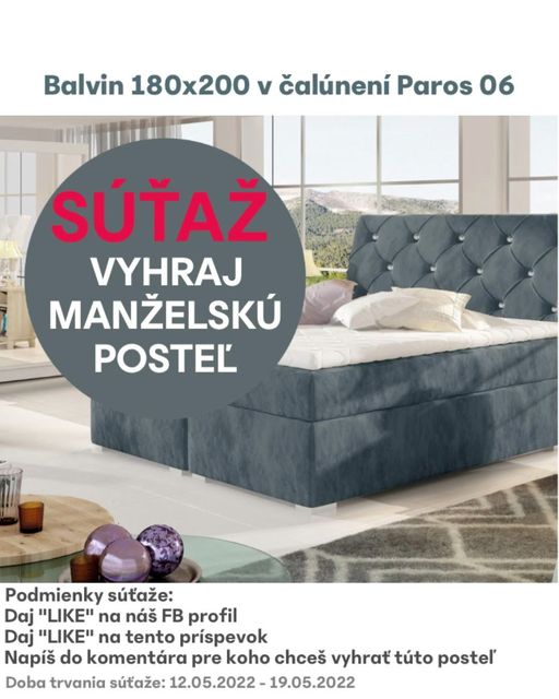 Zapojte sa do súťaže o manželskú posteľ BALVIN 180×200 Posted on 17. mája 2022 by Fb Súťaže Continue reading →