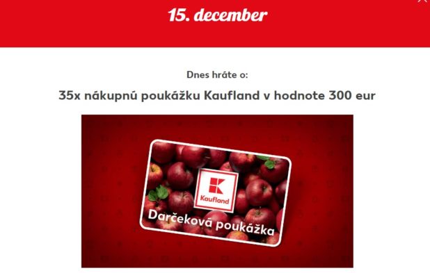 Kaufland Adventný kalendár otvorte okienko číslo 15 a hrajte o 35x nákupnú poukážku Kaufland v hodnote 300 eur Posted on 15. decembra 2021 by Fb Súťaže Continue reading →