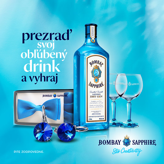 Zapojte sa do súťaže o set BOMBAY SAPPHIRE GIN obsahujúci: náušnice Swarovski, motýlik s vreckovkou do saka, sadu pohárov