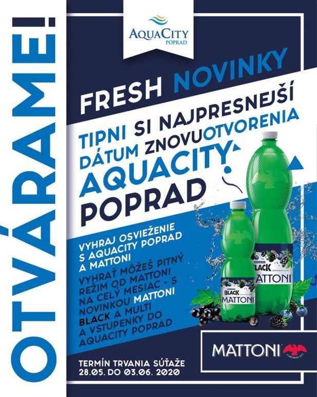 Zapojte sa do súťaže o pitný režim MATTONI Black na celý mesiac a Family rodinnú vstupenku do AquaCity Poprad!