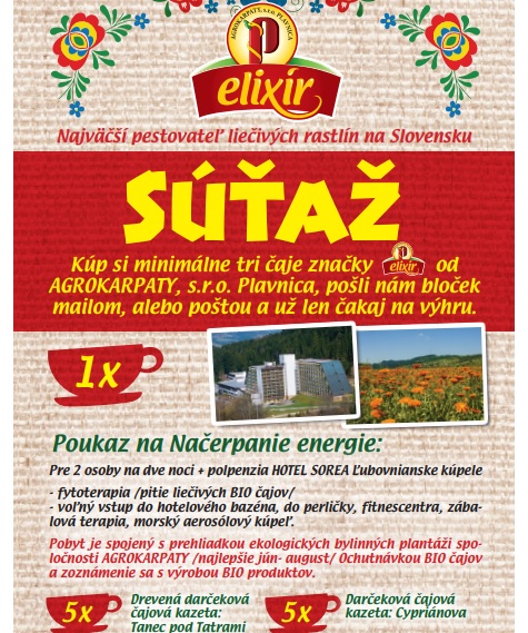 Zapojte sa do spotrebiteľskej súťaže o pobyt pre 2 osoby na dve noci + polpenzia HOTEL SOREA Ľubovnianske kúpele alebo ďalšie skvelé ceny!