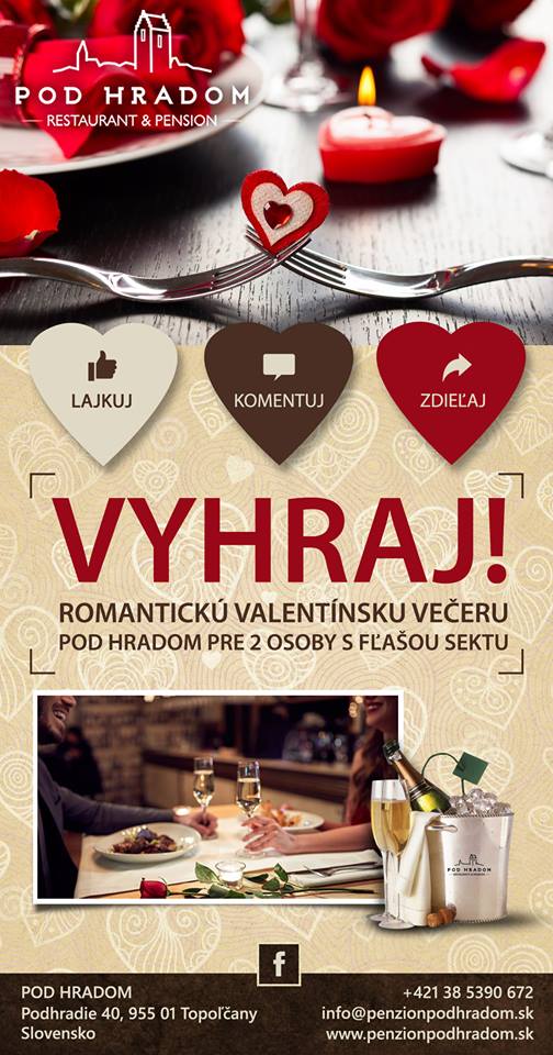 Zapojte sa do súťaže o Valentínsku 3-chodovú večeru s vínom a živou hudbou! Posted on 1. februára 2018 by Fb Súťaže Continue reading →