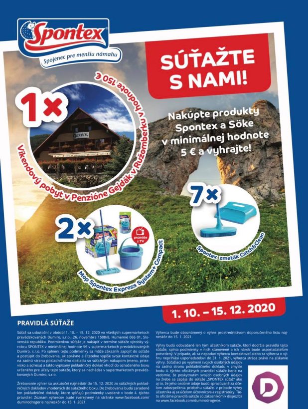 Zapojte sa do spotrebiteľskej súťaže o 1x víkendový pobyt v penzióne Gejdák v Ružomberku v hodnote 150€ alebo 2x Mop Spontex Expres systém Posted on 1. októbra 2020 by Fb Súťaže Continue reading →