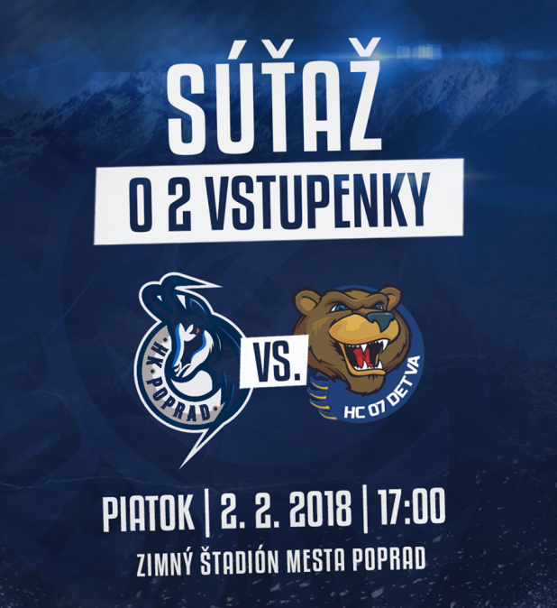 Zapojte sa do súťaže o 2 vstupenky na hokejový zápas HK Poprad vs HC 07 Detva!