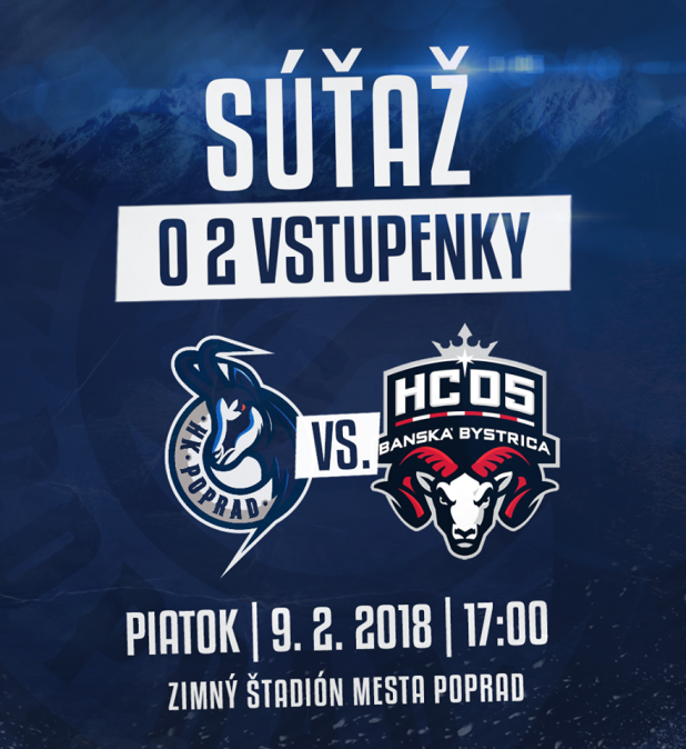 Zapojte sa do súťaže o 2 vstupenky na hokejový zápas HK Poprad vs HC 05 Banská Bystrica!