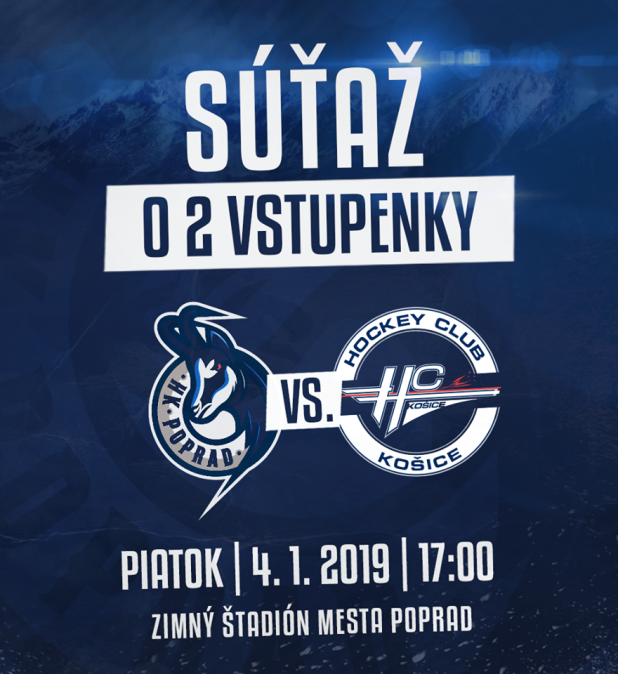 Zapojte sa do súťaže o 2 vstupenky na hokejový zápas medzi HK Poprad – HC Košice!